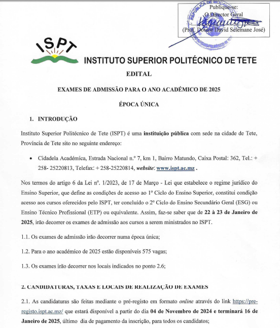Início: 2 de Outubro à 16 de Novembro Clique aqui para aceder o edital