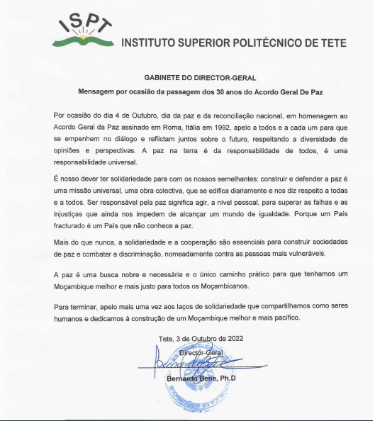 Click aqui para aceder a Mensagem por Ocasião da Passagem dos 30 Anos do Acordo Geral De Paz