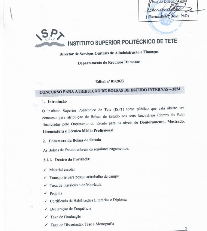 EDITAL PARA ATRIBUIÇÃO DE BOLSAS INTERNAS - 2024