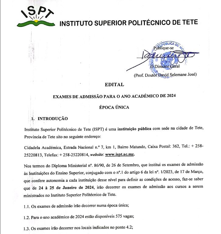 Clique aqui para baixar o edital de exames de Admissão 2024